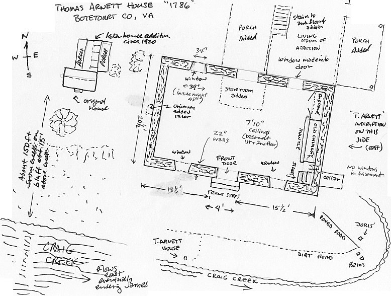 The following diagram was drawn after a visit to the house in May 2000 following directions to the site by Wayne Arnett.